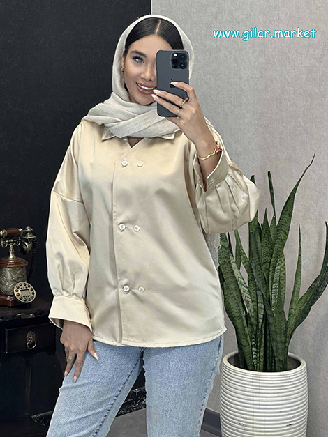 یقه مردانه،جلو دکمه،آستین پیله،فری سایز