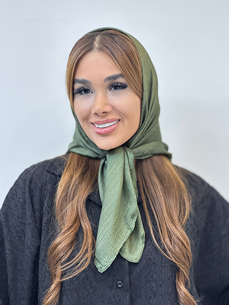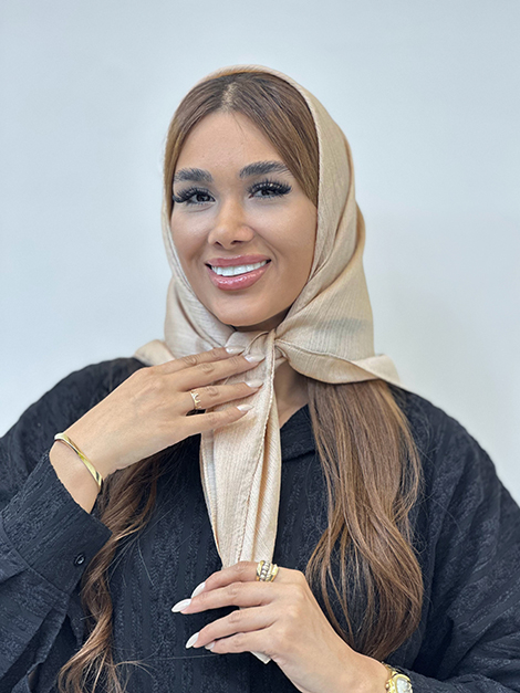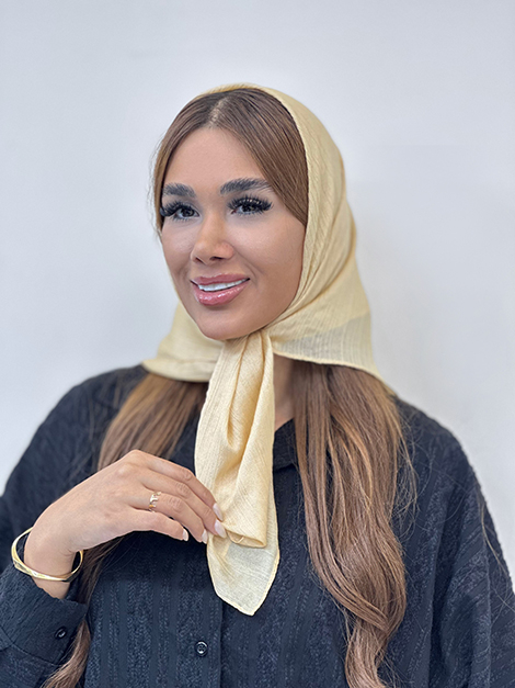 | روسری مینی اسکارف بسیار شیک برای استفاده روزانه و مجالس پارچه ی کار شاین ریز دارد | |