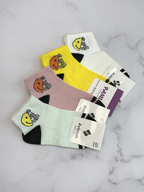 : جوراب نیم ساق پنبه استیکر/صورتی