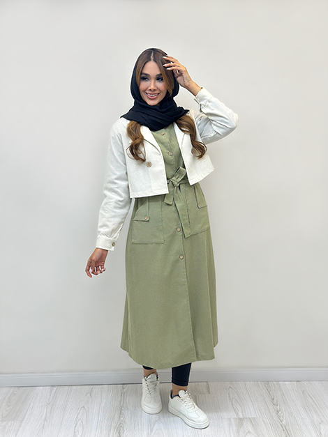 | سارافون به صورت بدون آستین و حلقه ای طراحی شده که ضمن راحتی باعث آزادی در حرکت هم میشه ، در قسمت کمر هم بند طراحی شده که میشه به راحتی اون رو تنظیم کرد . | |