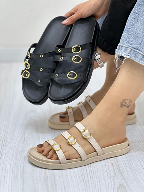 | صندل چرمی زنانهای که با طراحی خاص و جزئیات ظریف، استایل شما را در روزهای گرم کامل میکند. | |