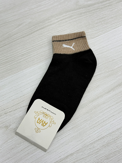 : جوراب نیم ساق پنبه (پوما 2 رنگ ) مشکی کرم