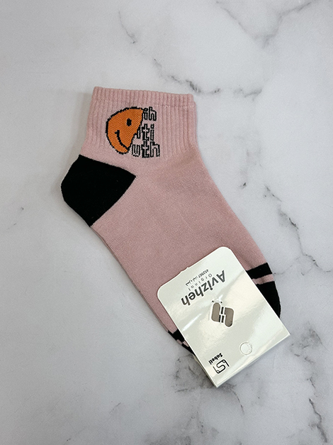 : جوراب نیم ساق پنبه استیکر/صورتی