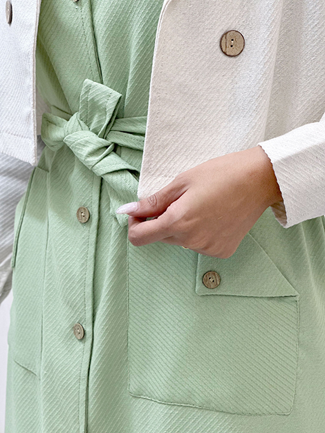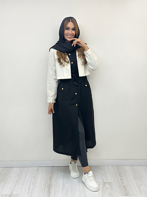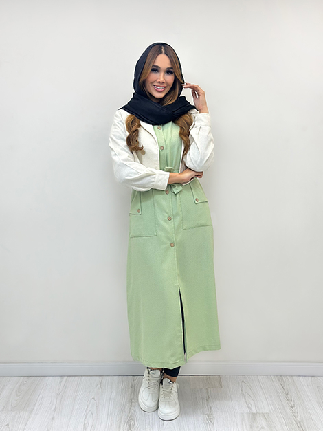 | سارافون به صورت بدون آستین و حلقه ای طراحی شده که ضمن راحتی باعث آزادی در حرکت هم میشه ، در قسمت کمر هم بند طراحی شده که میشه به راحتی اون رو تنظیم کرد . | |