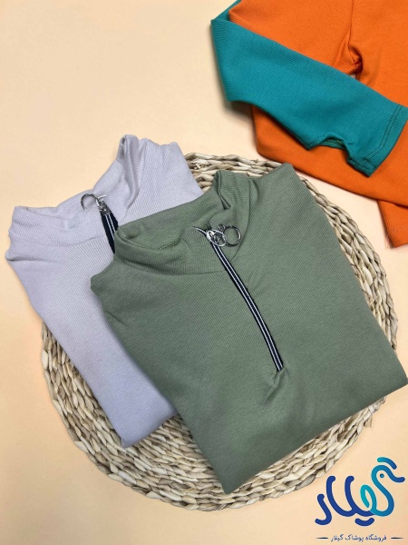 یقه گرد زیپ دار نیم تنه دارای استین بلند
